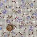 タイルのような四角が敷き詰められたベースにランダムに散りばめられたお花とリボン。