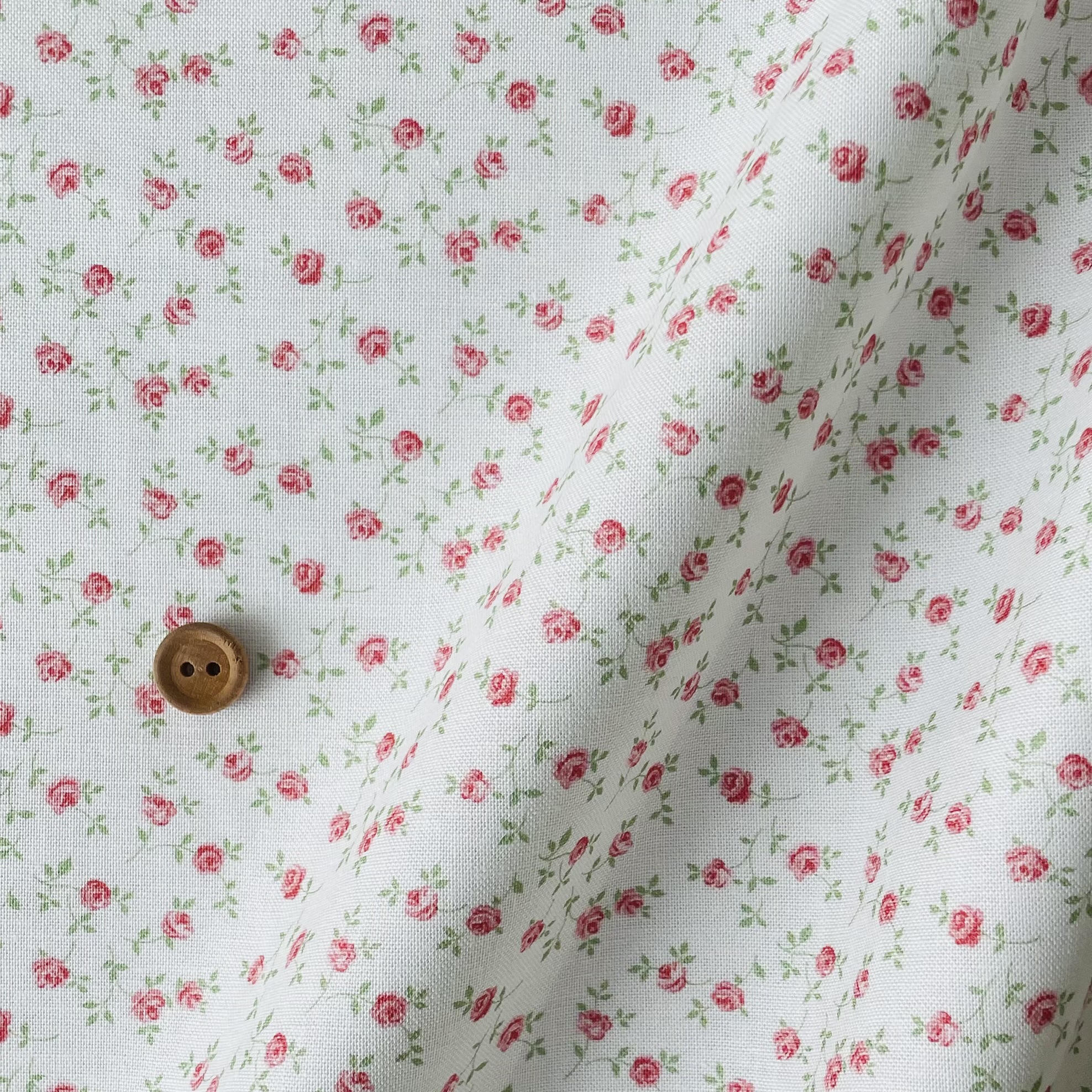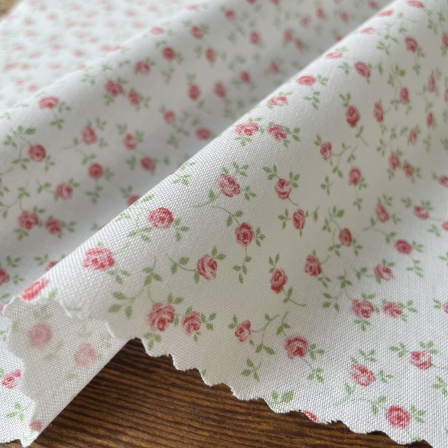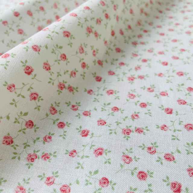 直径4ミリほどの可憐なミニバラがランダムに全体に散る使いやすいクラシックな花柄です。