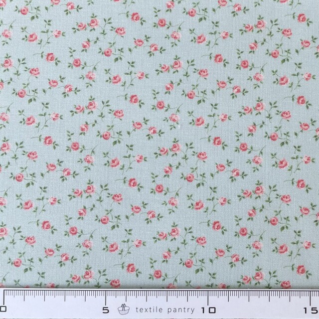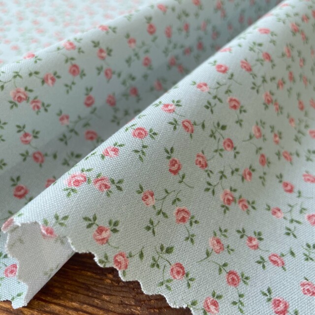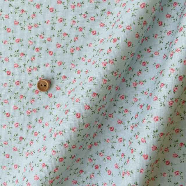 直径4ミリほどの可憐なミニバラがランダムに全体に散る使いやすいクラシックな花柄です。