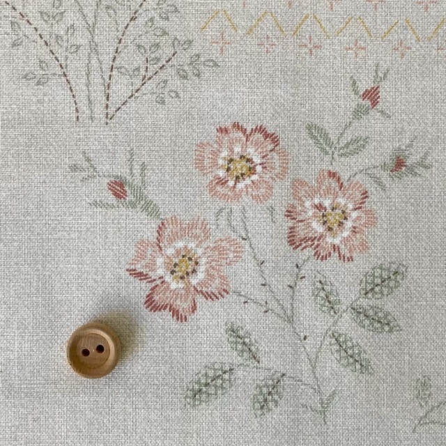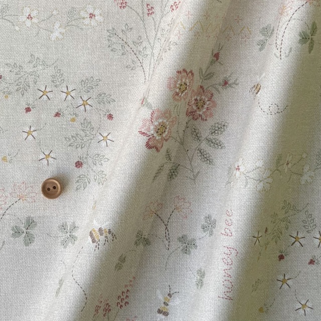 *Flower&Bee*柄は麻地に刺しゅうをしたようなタッチのお花の中を蜂が飛ぶやさしいタッチのプリント柄です。