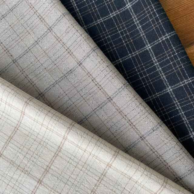 すっきりしたラインでチェックを構成しベーシックな色目とあいまって控え目ながら存在感のある柄となりました。
